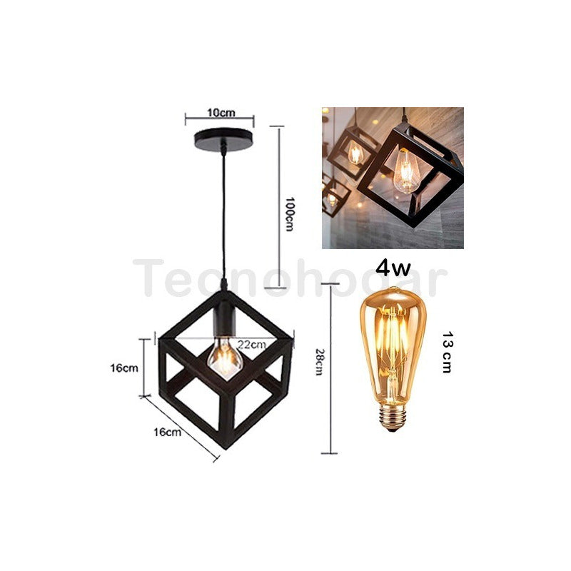 Lampara Colgante Fierro Cuadrada, Incluye Ampolleta Vintage Negro
