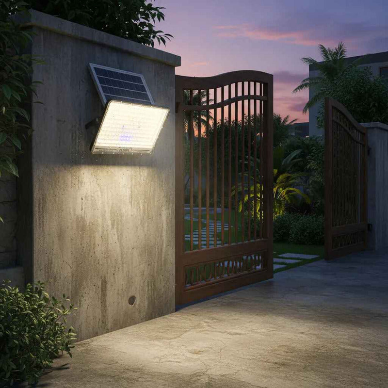 Foco Solar 1500w Panel Solar Y Control Remot Luz Blanco Frío Negro Blanco Frío