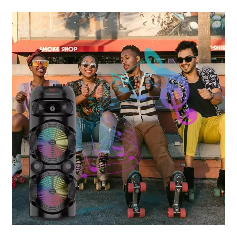 Parlante Inalambrico Portatil 80cm Bluetooth Led Microfono Negro