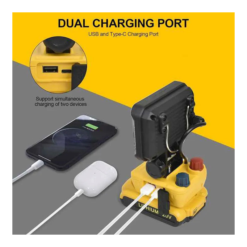 Pack x2 Foco Led De Trabajo 100w Portátil Recargable Minero Este foco led de 100w de potencia con batería recargable es perfecto para cualquier situación de emergencia ante la falta de luz, un complemento ideal para llevarlo en el coche, un sistema de iluminación barato y para llevar de camping, o como sistema iluminador de estancias en obras... El foco es completamente portátil, incluye dos cargadores (para auto y corriente eléctrica), está fabricado en aluminio y cuenta con el estándar de protección ip65, lo que indica que es completamente resistente al polvo y al agua, permitiendo utilizarlo tanto en interior como en exteriores. Tipo de foco: LED Potencia: 100W IP: IP65 Luminosidad: 90Lm/W Funciones: 2 + Baliza RGB Cargador: 12V – 220V Tipo de luz: 6500K (FRÍA) Ángulo de iluminación: 120° Tiempo de carga: 8H Autonomía: 8-10H Vida útil: 50000H Incluye: Cargador 220V – 12V Certificación: CE RoHS
