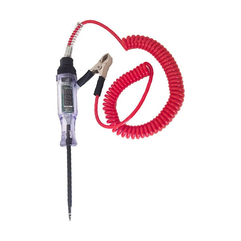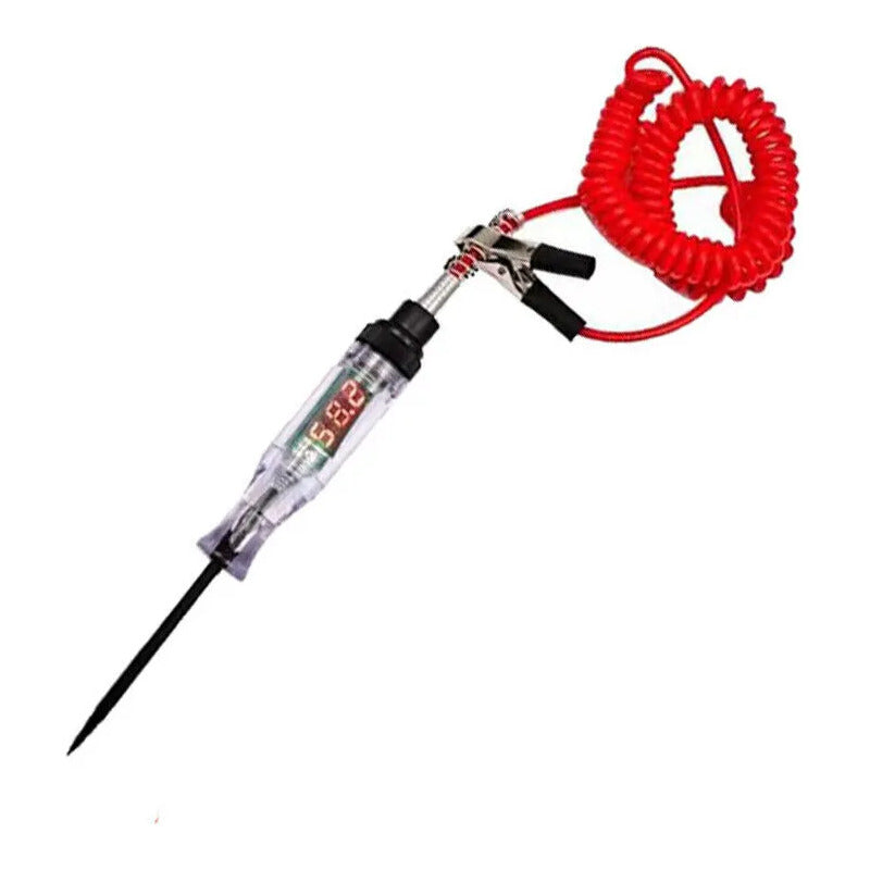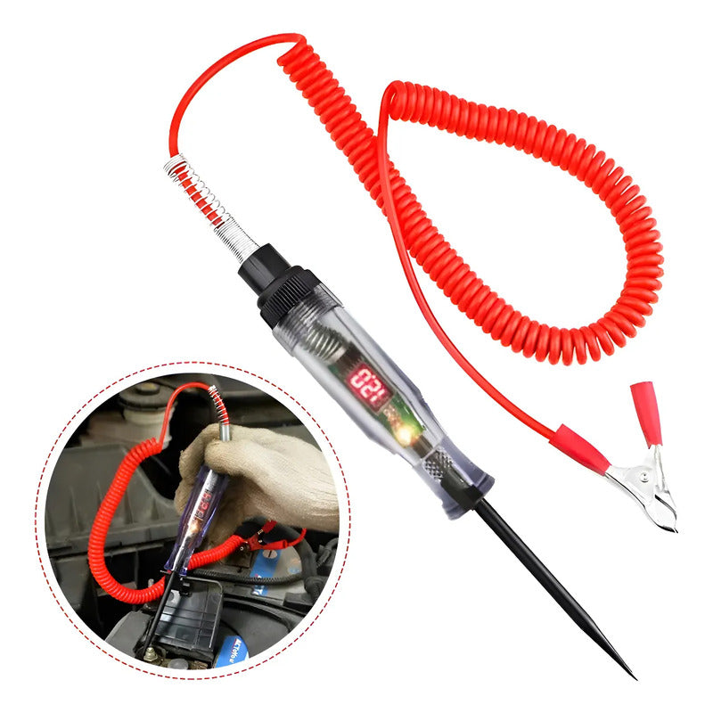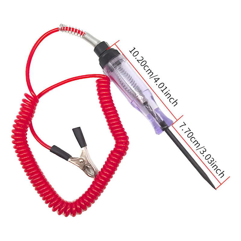 Prueba de voltaje bidireccional: simplemente conecte la pinza de cocodrilo a la tierra negativa o positiva fácilmente, y hay LED en la placa de circuito para indicar la polaridad (la luz roja significa polaridad positiva "+". La luz verde significa polaridad negativa "-"). FÁCIL DE LEER: Nuestro bolígrafo de prueba motorizado tiene una gran pantalla digital LCD que es fácil de leer a la luz del día y en la oscuridad porque tiene luz. DURADERO Y FLEXIBLE: Diseñado con un cable largo y estirable y una sonda para un fácil acceso a áreas difíciles de diagnosticar. El diseño anti-doblado de la línea de cola, no se preocupe por el contacto inadecuado con la línea de pesca. Amplia aplicación: este probador de circuitos es ideal para verificar los circuitos eléctricos de varios vehículos, verificar rápidamente los faros delanteros, las luces traseras, los circuitos de señal de giro, los enchufes defectuosos y las conexiones de fusibles, y probar otros cables y circuitos de 6-24 V CC.