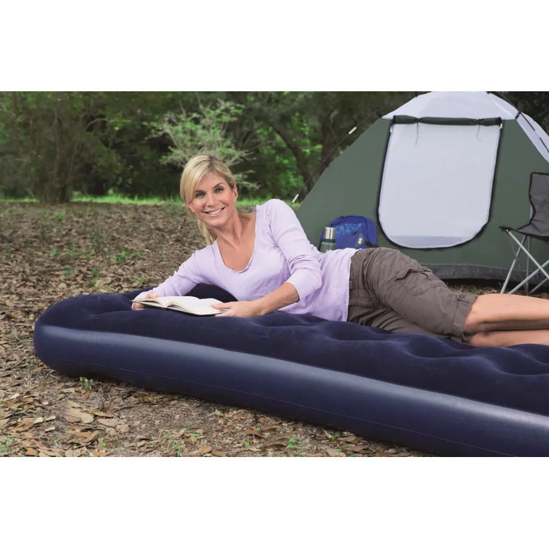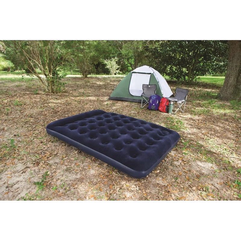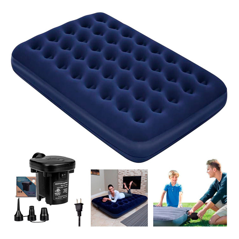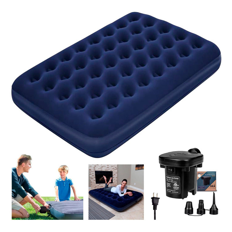 Colchón Inflable 2 Plazas + Bomba De Aire Portátil Azul