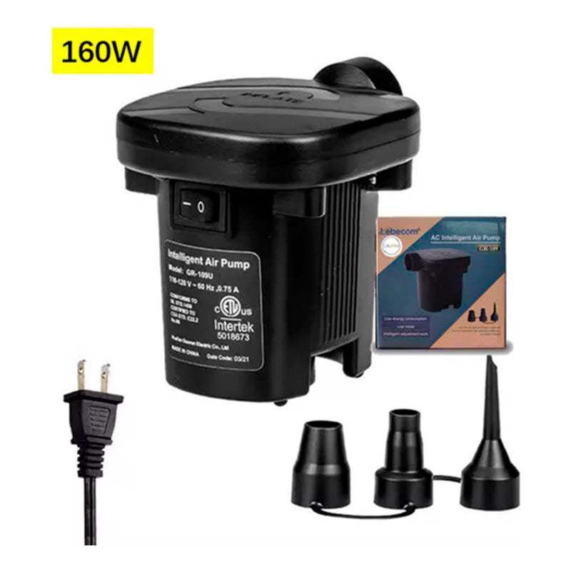 Colchón Inflable 1 Plaza + Bomba De Aire Portátil Negro