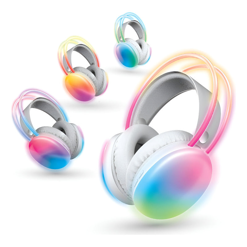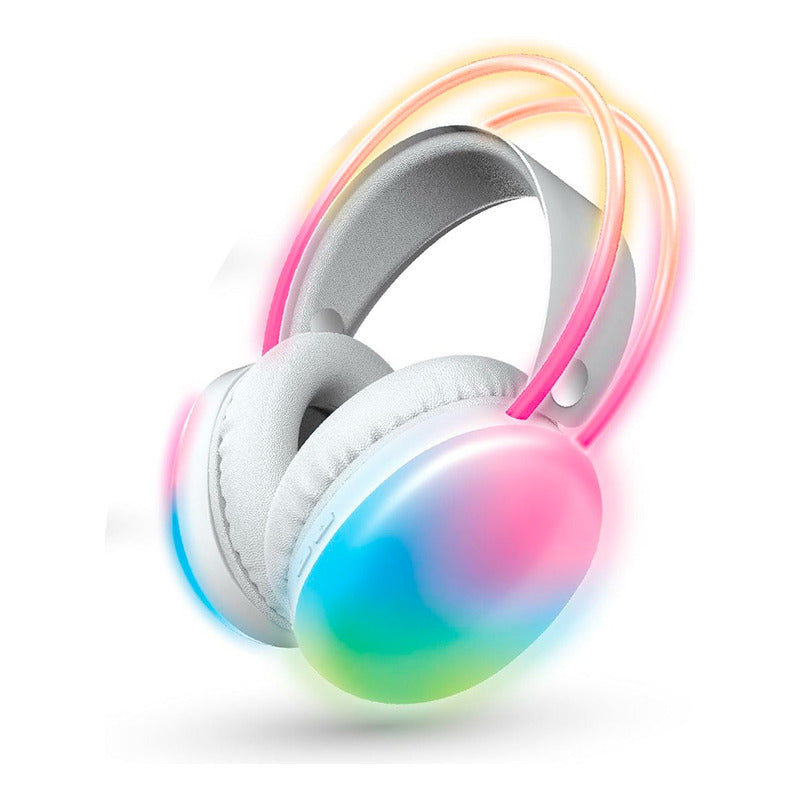 Audífonos Inalámbricos Recargables Microfono Luces Led Blanco/negro