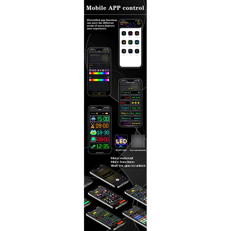 Fácil descarga y configuración: La aplicación inteligente se conecta al letrero LED a través de Bluetooth, permitiéndote editar texto, gráficos y animaciones, ajustar el brillo y el ritmo . Ofrece muchas opciones preestablecidas y permite actualizar el contenido publicitario en tiempo real, soportando múltiples señales LED simultáneamente. Brillante y colorido: El letrero LED muestra el contenido exactamente como en tu teléfono. Con un chip RGB, garantiza visibilidad tanto de día como de noche, ideal para captar la atención en calles, vehículos o ventanas. Personalización sencilla: Este letrero LED programable permite crear pantallas atractivas para tiendas, vehículos, bares, restaurantes y eventos. Soporta varios idiomas y no necesita conexión a Internet. Viene con diferentes modos de visualización. Diseño flexible e impermeable: Fabricado con materiales impermeables IP66, es resistente a diversas condiciones climáticas. El letrero es delgado, flexible y fácil de transportar, con un bajo consumo energético y funcionamiento seguro a través de USB o fuente de alimentación. Plug and play para mayor comodidad.