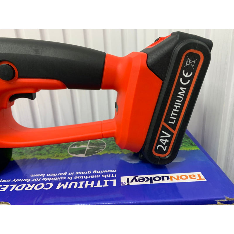 MPORTANTE: VER EL VIDEO DE LA GALERIA PARA INSTRUIRSE SOBRE COMO CAMBIAR DE UN MODO AL OTRO. Cortadora De Setos Inalámbrica Cortacésped Electrico cuenta con 2 tipos de cuchillas intercambiables: tijeras de césped y mini cortasetos de 9 pulgadas, ambas sin cable. Este dispositivo 2 en 1 es capaz de recortar arbustos y cortar césped, ideal para áreas pequeñas y de difícil acceso. Equipada con un motor potente de 1260 rpm y una batería de 24 V-2.0 Ah, esta recortadora de césped de mano inalámbrica ofrece un rendimiento de corte superior y una autonomía prolongada en comparación con modelos de menor voltaje. El diseño incluye un doble interruptor para un arranque seguro y para prevenir accidentes. Ligera, con un peso inferior a 3 libras y un mango ergonómico, permite un uso prolongado sin causar presión en la muñeca, siendo cómoda para una amplia gama de usuarios. Las cuchillas dobles operan simultáneamente para incrementar la eficiencia de corte y su diseño de doble acción minimiza atascos y enganches. Se recomienda limpiar y secar las cuchillas después de su uso para mantenerlas en óptimas condiciones. La cabeza de la recortadora se puede ajustar en un ángulo de 90°, permitiendo cortes desde diversas posiciones y facilitando el mantenimiento de jardines pequeños, el aseo de setos y el acceso a zonas que el cortacésped convencional no puede alcanzar.