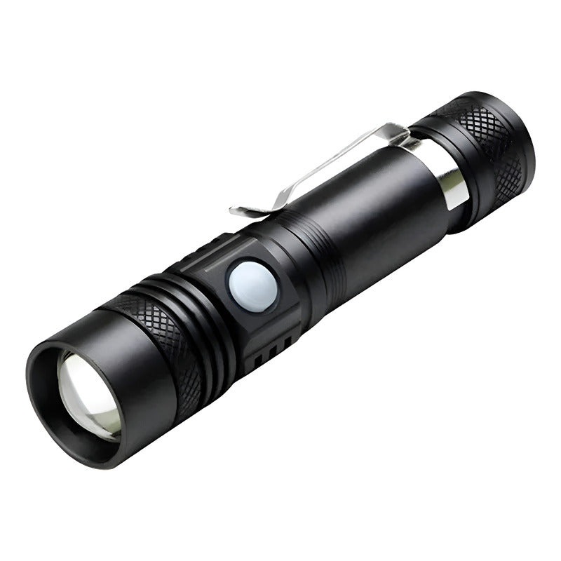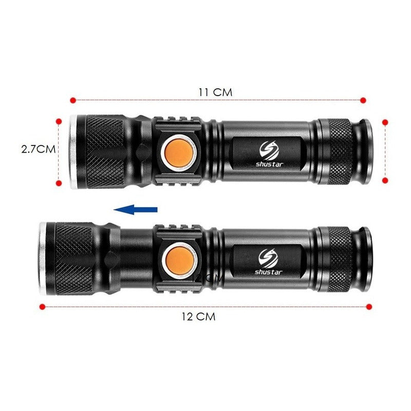 Linterna Led de mano de alta potencia lumínica 3 tipos de iluminacion (parpadeo - luz alta - luz baja) Potencia: 3000 lumens Recargable: USB Temp luz: 6000K Cuerpo: Metálico 10.000 horas de vida