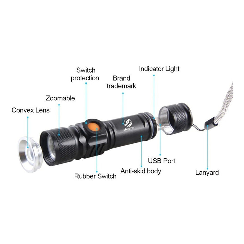 Linterna Led 3000 Lumens Recargable Con Zoom Resiste Lluvia Blanco Negro
